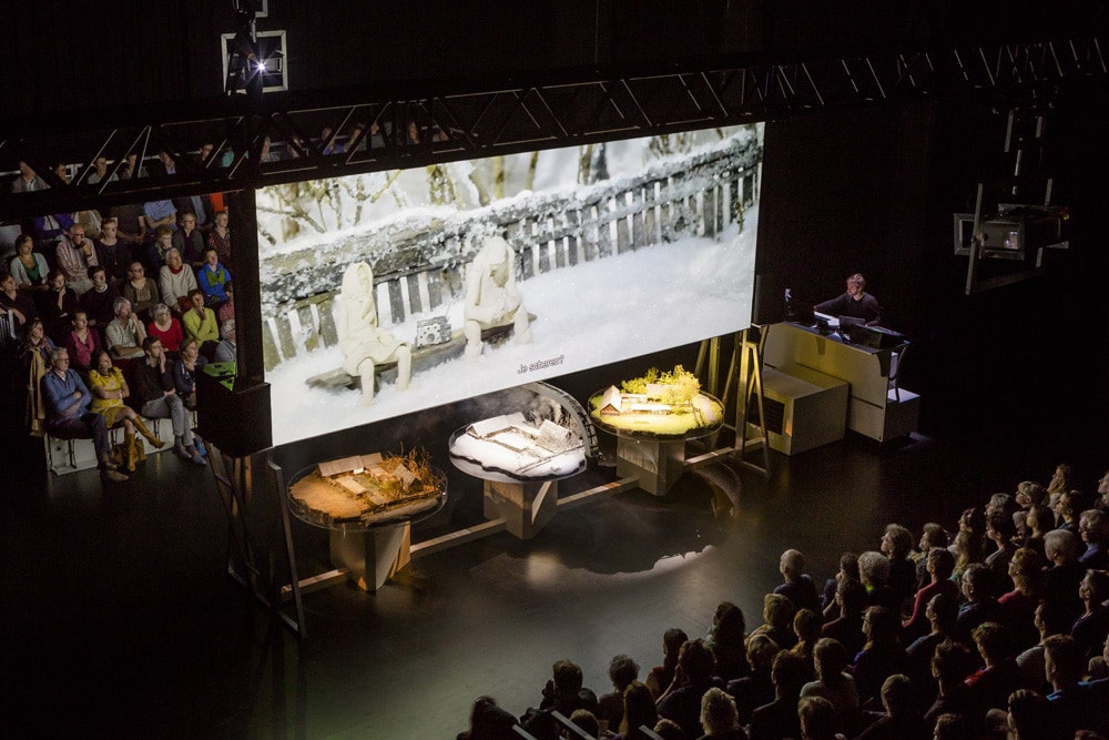 Muni d’un écran double et de ses trois maquettes miniatures représentant le lieu de vie de Pétro et Nadia aux différentes saisons, le groupe Berlin livre un portrait brut et poignant, mêlant solitude, survie, pauvreté, superstitions, vodka, imprécations et espoir aux images de villes fantômes, de lieux pétrifiés envahis par la végétation, de nature libre reprenant ses droits.