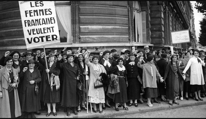 L’injustice est dénoncée en France par les communistes et enfin réparée le 21 avril 1944. L’amendement communiste de Fernand Grenier est voté par 51 voix contre 16, sur 67 votants. Les françaises votent en 1945 à la 59 e place mondiale, comme les Japonaises.