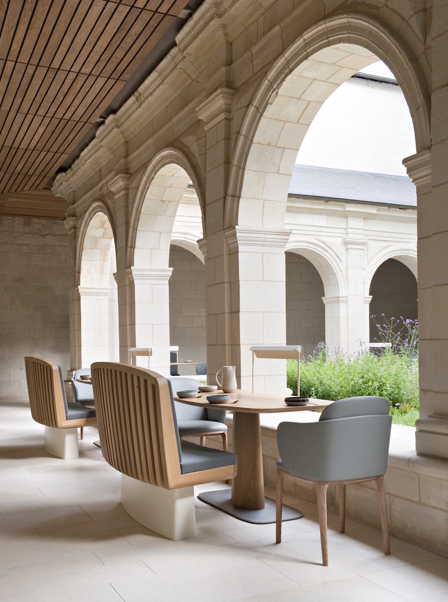 Au cœur du prieuré Saint-Lazare, l’hôtel 4 étoiles Fontevraud L’Ermitage prolonge la tradition d’accueil monastique dans un cadre d’un luxe discret, imaginé par Patrick Jouin et Sanjit Manku. Son chef, Thibaut Ruggeri, Bocuse d’Or et étoilé Michelin, y déploie une cuisine inspirée par les cycles lunaires et les produits du potager biologique de 5 000 m² cultivé sur place. À chaque pleine lune, un menu nouveau, sobre et lumineux, célèbre la nature et le temps qui passe. L’ensemble a valu à Fontevraud l’étoile verte de la gastronomie durable et, en 2024, une Clef Michelin pour son hôtel.