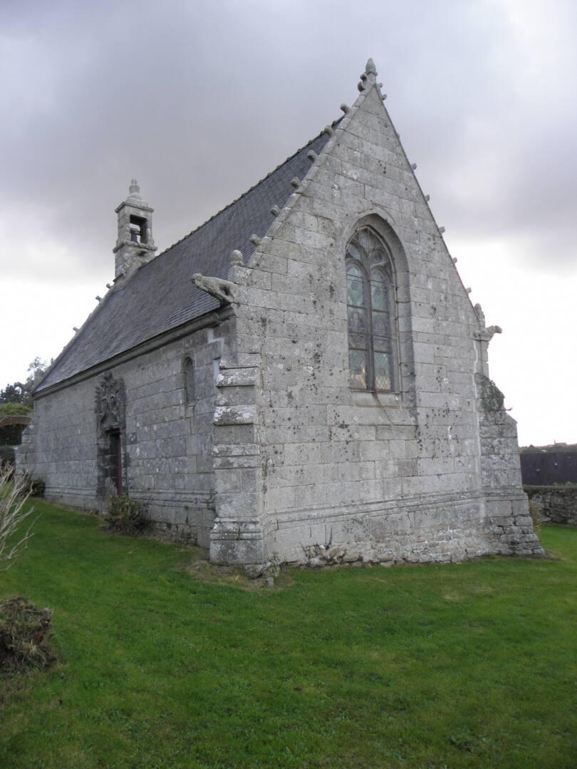 La chapelle du Pénity longtemps ensablée cacherait, paraît-il, dans ses fondations l’ermitage de Saint Goulven voire même une petite abbaye. J’imagine sans difficulté aucune la coupe du goémon sur les rochers au printemps, le séchage sur la plage, les naufrages, les gros temps. En suivant son regard, j’aperçois, en remontant le passé, des vasières, des étangs, des terres sablonneuses, des silhouettes courbées sur une digue. Plus loin, bien réel, le majestueux clocher du village rivalisant à ses dires avec ceux du Folgoët et de Saint Thégonnec. Tout y passe.