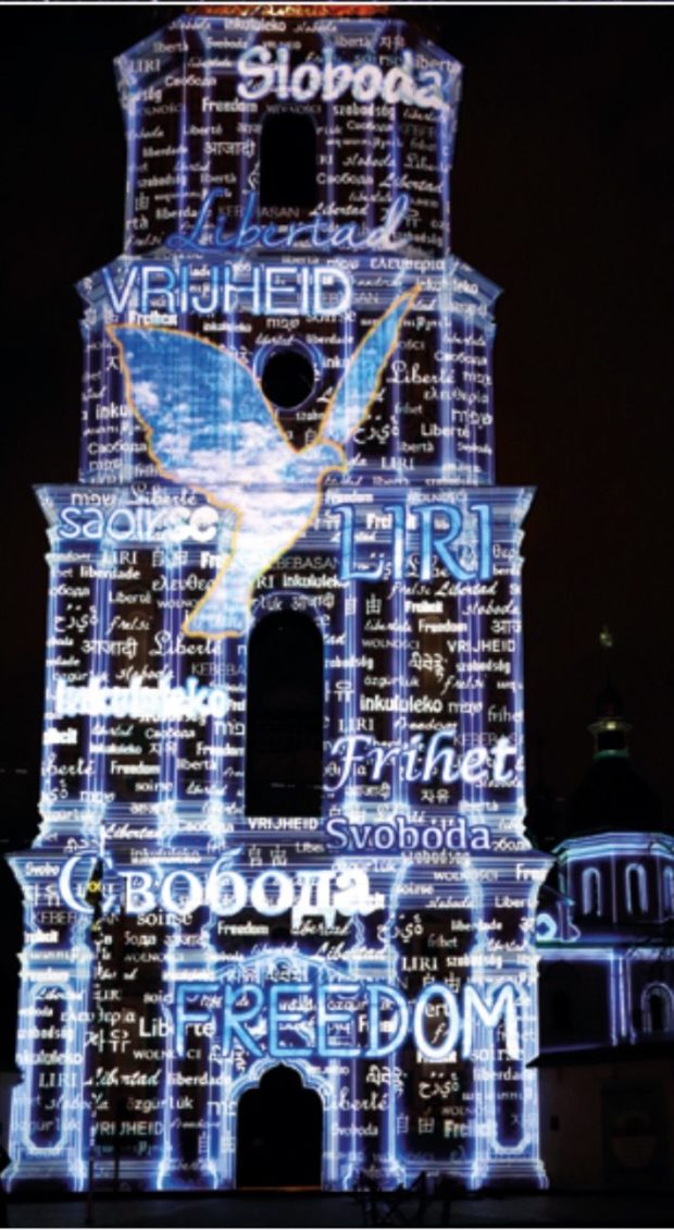 Les Allumeurs d’images de Spectaculaires ont proposé le 4 avril 2015 un nouveau show d’images monumentales (mapping video) intitulé « Je suis un rêve… ». Où ? Sur l’un des piliers de la civilisation slave orthodoxe : la Cathédrale Sainte Sophie de Kiev. Plus de 30 000 Ukrainiens meurtris par la guerre civile se sont pressés pour vibrer, admirer mais aussi éclater en pleurs à la vue de cette nouvelle réussite des Allumeurs d’image qui prenait pour cible cet élément essentiel qui est le rêve de chacun tout en étant la perspective de toute société démocratique digne de ce nom : la Liberté !
