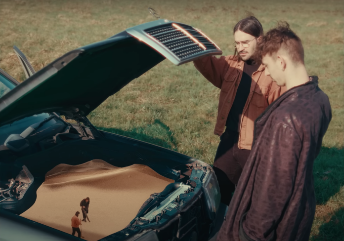 Conduire une voiture à deux volants, déguster du sable dans une vigne, passer l’aspirateur dans une rue du Rheu, arroser la mer… Voilà quelques-unes des improbables situations auxquelles on assiste dans le clip « Sinking Ocean » du groupe Atoem paru le 6 avril 2023.