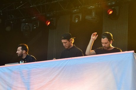 Dimanche a une nouvelle fois laissé une place de choix à l’électro, tout d’abord à 20 h 20 sur la scène Grall, avec les DJs et beatmakers français de la bien nommée Fine Équipe. Au milieu de tous les artistes électro présents à Carhaix cette année, la prestation du trio a détonné. Très influencée par le hip-hop et la soul des années 70, La Fine Équipe a proposé un live qui, par la magie du sample (extrait d’un morceau déjà existant réutilisé dans une composition nouvelle, et souvent joué en boucle), s’apparentait par moments à un revival jubilatoire, à un panorama des plus grandes heures de la musique afro-américaine, remise au goût du jour. On a ainsi pu entendre des extraits de morceaux classiques de la soul (Otis Redding, Donny Hathaway…) dynamisés et ainsi taillés pour la scène. Le trio a conclu le live sur « Make U Greedy », leur morceau le plus connu, avant d’enchaîner sur un rappel jubilatoire.