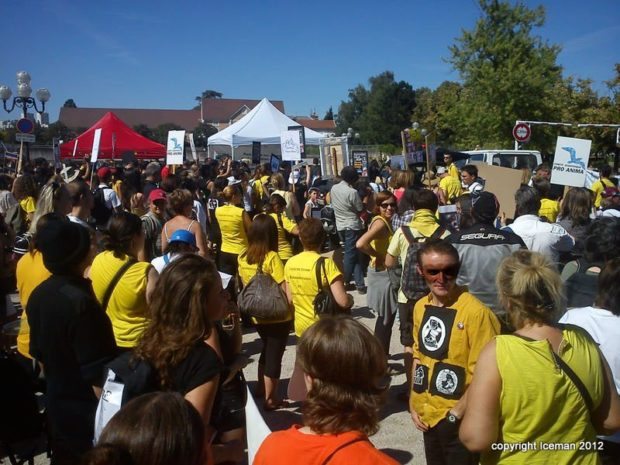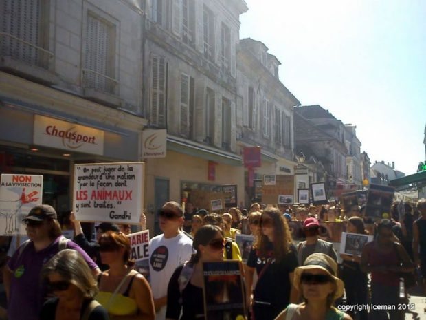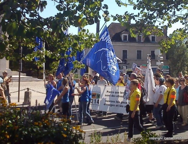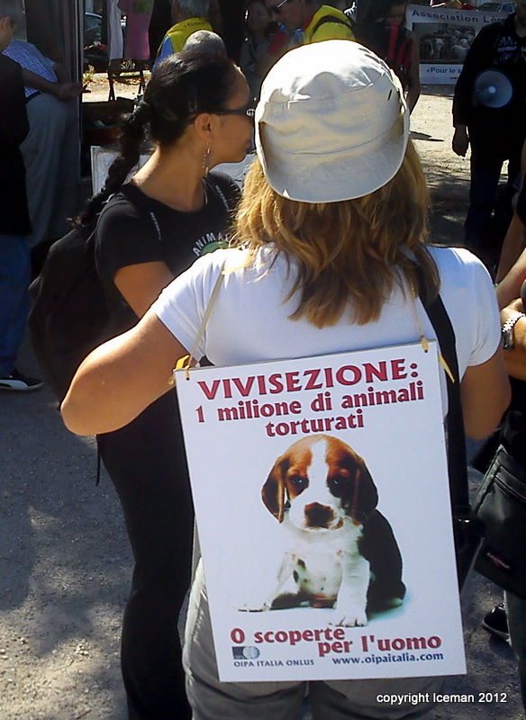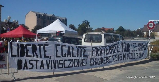 Le Collectif contre l’expérimentation et l’exploitation animale peut se féliciter de son appel à manifester. Les militants ont été selon lui deux fois plus qu’en 2011 à répondre présents. Surprise appréciée : la présence et le témoignage de militants italiens qui ont permis la fermeture de l’élevage de GreenHill à Montichari tristement célèbre pour ses 2500 chiens sauvés de l’enfer.