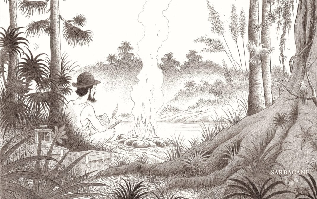 Nous allons l’accompagner dans ces journées de marche, au rythme de cette balade, parfois silencieuse et contemplative, parfois emplie de rencontres où le dessinateur rennais peut librement donner cours à la richesse de dialogues forts. On croise ainsi un vieux sage à la barbe fleurie, un entrepreneur qui croit au progrès et aux ressources naturelles illimitées, trois gentils benêts et un bienfaiteur humaniste, avant de nous enfoncer dans les marigots de Floride, porteurs d’une fièvre qui fait resurgir les souvenirs de l’enfance, le départ d’Écosse, l’intransigeance du père. La navigation vers Cuba, New-York va remplacer alors la marche mais le parcours initiatique de John Muir, qui prend de plus en plus la figure d’un Abraham Lincoln, sur terre ou sur mer se poursuit.