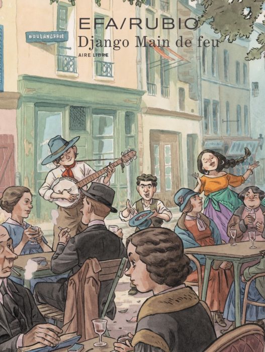 Efa et Rubio dans cette BD consacrée à Django Reinhardt explorent la jeunesse et l’adolescence du plus célèbre des Manouches. Une vie incandescente traitée sobrement et efficacement. Où la musique traîne en fond sonore.