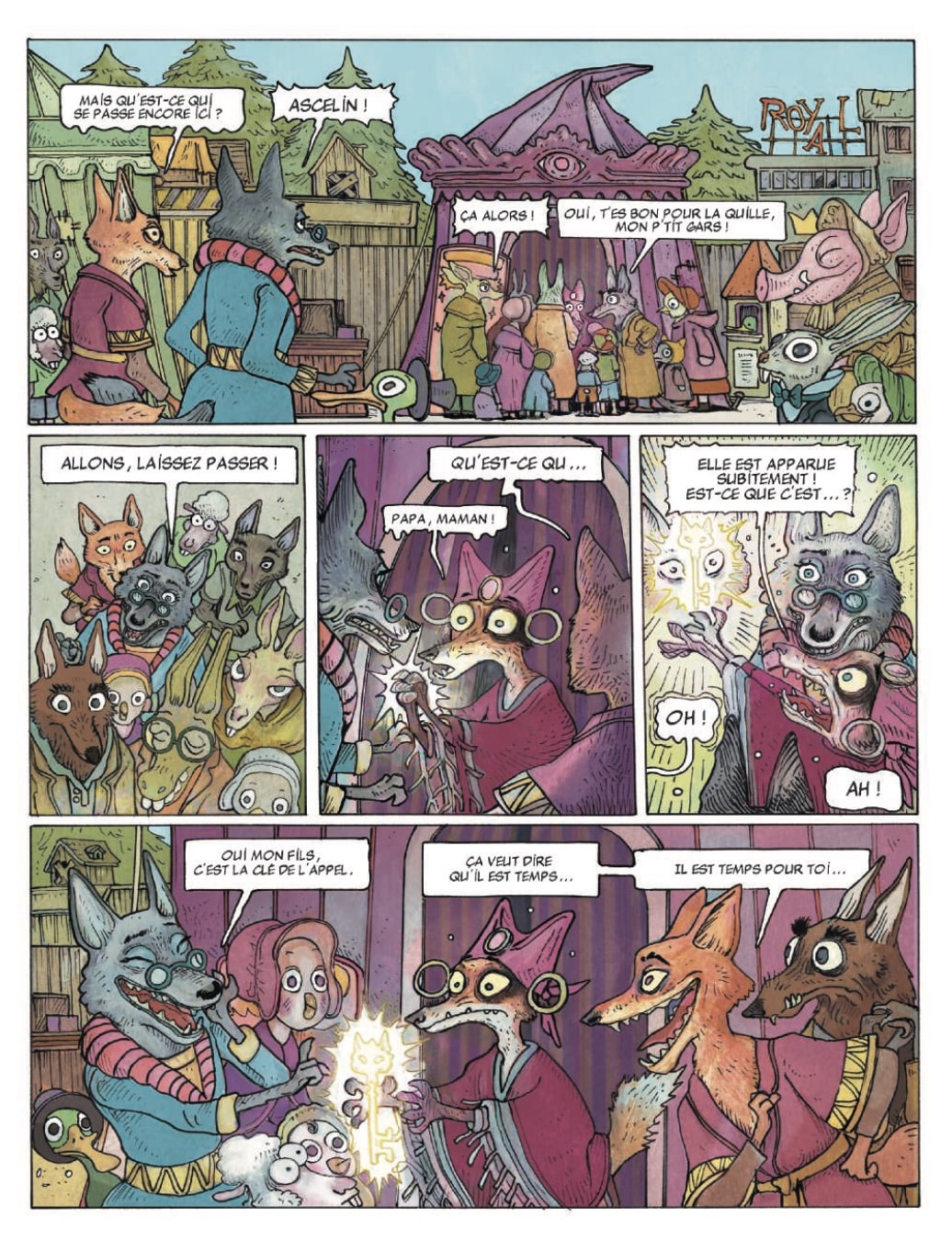 Face à lui, Ascelin évolue avec agilité. Tour à tour rusé, ému, insolent et déterminé, il incarne le renard du bestiaire médiéval : plus prompt à contourner l’obstacle qu’à l’affronter de front, mais toujours fidèle à ceux qu’il aime. Loin d’un héros naïf, il manie les silences, les lettres cachées, les retournements dramatiques comme autant d’armes morales. Sa plus grande victoire ? L’ouverture d’un coffre supposé inviolable, révélant la vérité des lettres échangées entre sa mère et sa grand-mère, tenues secrètes par le serviteur Roonel. Par cet acte, Ascelin rétablit un lien brisé et libère l’histoire familiale de ses non-dits.