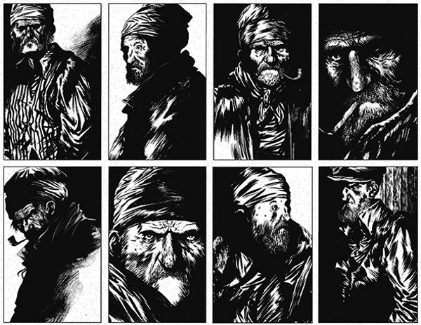 Elle est noire cette BD tirée d’un roman de Philippe Claudel, plus noire que blanche. Manu Larcenet nous avait habitués à traiter des thèmes graves comme ses angoisses existentielles (Le combat ordinaire) avec un dessin léger, voire enfantin. L’humour faisait passer le propos. Avec les quatre tomes de Blast sa dernière production, l’histoire et le dessin glissaient déjà beaucoup plus vers le sombre et le désespoir. Dans Le rapport de Brodeck le côté pessimiste de Larcenet éclate totalement dans un dessin revisité et exceptionnel.