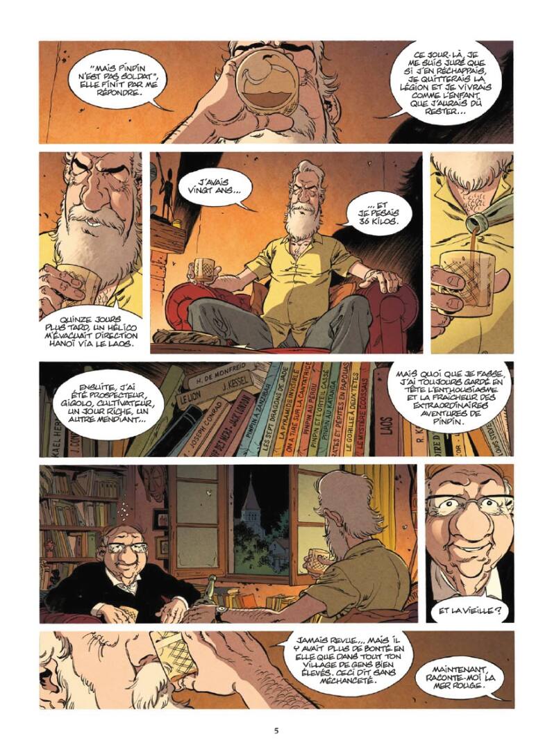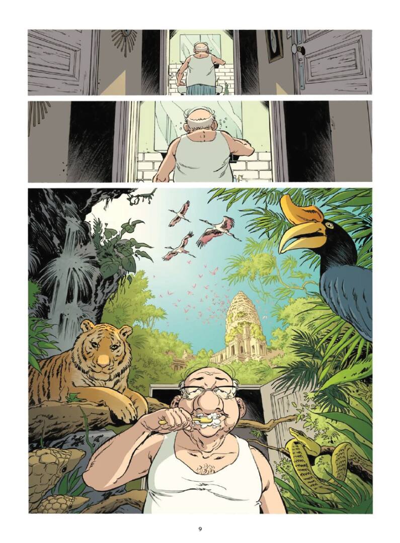 Le scénario de Mark Eacersall témoigne de la rudesse des temps qui passent, atténuée par la capacité des hommes à rêver et à substituer à une triste réalité de magnifiques histoires. Goût de l’aventure, force de l’amitié, regard sur la vieillesse, autant de thèmes qui traversent cette BD où tout est juste, y compris dans le découpage des scènes et une mise en page parfois onirique, parfais ultra réaliste, toujours horizontale, qui fait que la BD se lit comme un roman.