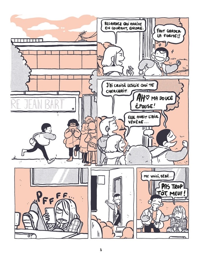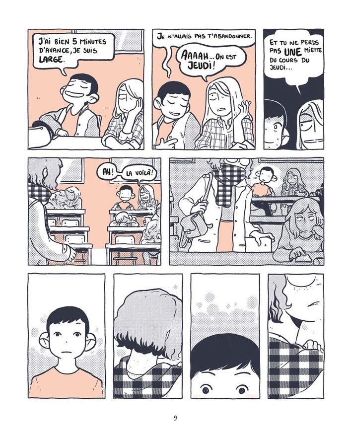 On est avec elles en cours, dans la solitude du réveil devant la tasse du petit déjeuner et l’absence de parents totalement transparents au cours des deux cents pages du récit. L’amitié entre copines, l’intercession de la meilleure d’entre elles, lésée de se retrouver écartée, les complexes, les différences, tous ces sentiments nouveaux et explosifs transparaissent dans un récit sans lourdeur et auquel le dessin et la mise en page d’une rare maîtrise confèrent un rythme de lecture intense.