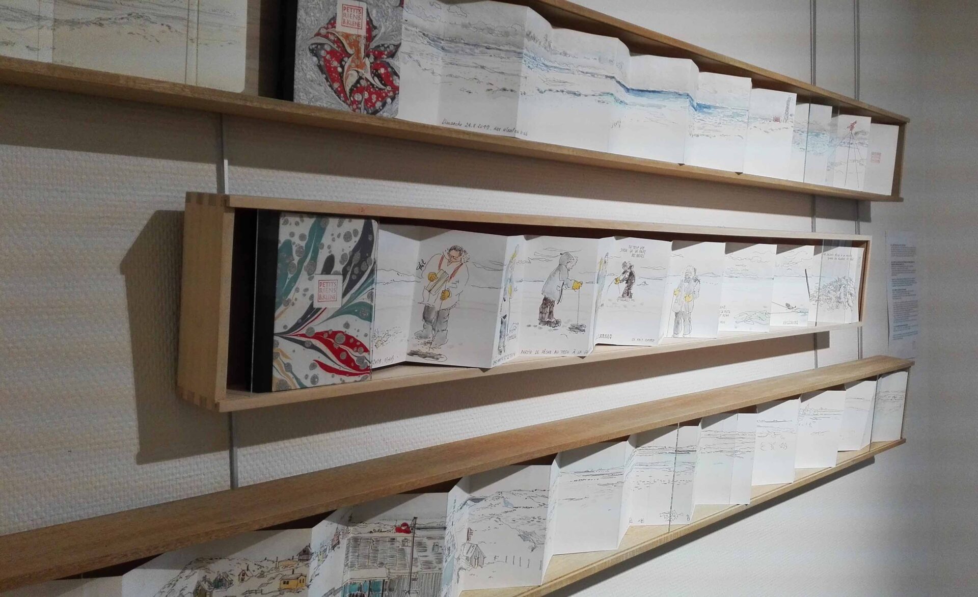 Les écoles de Bécherel et Paul Émile Victor de Saint-Grégoire voulaient réaliser une correspondance ou communiquer par Internet. Cependant, créer un dialogue entre les deux écoles sans vraie connexion Internet était techniquement impossible. Les enfants de Bretagne ont donc travaillé sur des leporellimini. Le premier était offert aux enfants d’Akunaaq et le second, celui qui est exposé aujourd’hui, a été travaillé avec leur enseignante.