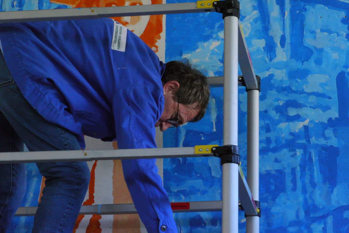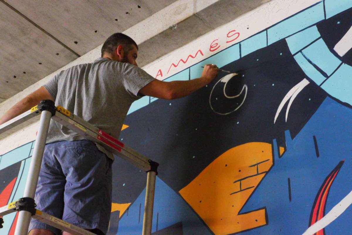 Dr Ponce en action sur un des murs du Hall PC4, à la Courrouze