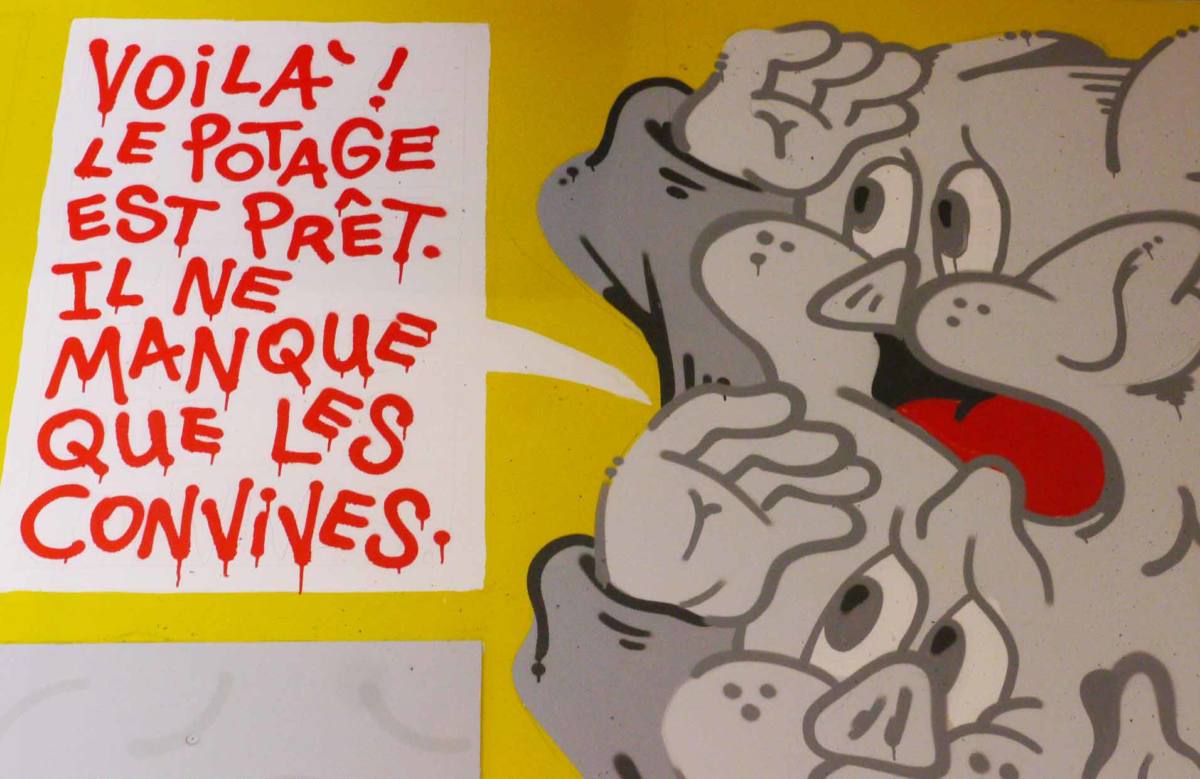 On aime aussi avoir un certain suivi des artistes. Nous proposons à ceux qui ont travaillé sur un mur de réaliser une exposition ou l’inverse. Ça permet de les voir créer dans différentes conditions. En 2017, Loulou Picasso (Jean-Louis Dupré) et Amandine Urruty ont par exemple participé à l’exposition « Marquis de Sade », il y était question de petits formats. Loulou Picasso est peintre à l’origine et a fait parti du groupe Bazooka, très important dans le graphisme français. C’est une des premières fois qu’il fait du muralisme donc l’approche est différente. C’est un challenge pour eux.
