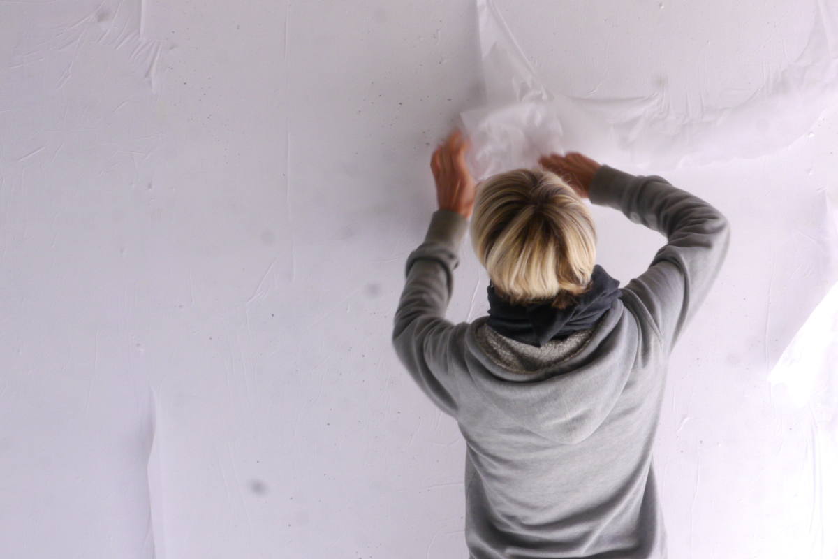 L’artiste YS (FRANCE) travaille à base d’encre de chine. Une longue préparation du mur est nécessaire avant de commencer l’oeuvre.