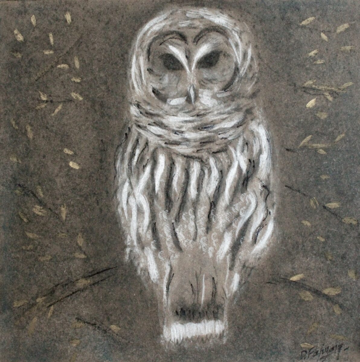 Plus tard, l’artiste se lance dans de vrais bois et de vraies forêts où elle peut pénétrer et humer la pénombre feuillue. Elle entre en forêt comme on entre en peinture et les frontières entre le réel et l’imaginaire sont définitivement brouillées. C’est un espace poétique qui s’ouvre alors à elle ! Jour après jour, l’artiste dessine un arbre et les accroche tous côte à côte dans son atelier, et un jour, en les observant, elle s’aperçoit qu’une forêt est en train de naître. Alors, elle glisse un dessin de hibou puis un dessin de cerf, de lièvre et la forêt se met à vivre. Son projet est né : évoquer la forêt, l’imaginaire qui s’y attache, le cycle des saisons, le temps à l’œuvre ! Le projet qui a maturé pendant une décennie a aujourd’hui trouvé sa place dans l’espace de La galerie…