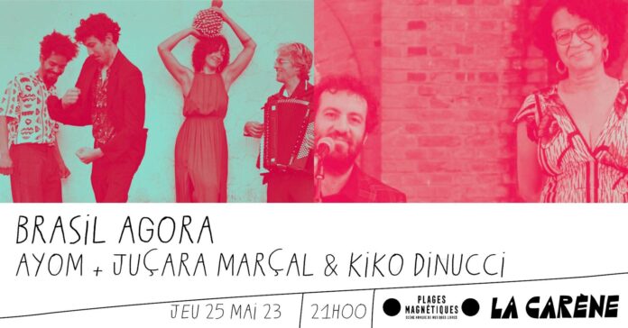 Le partenariat entre La Carène, Plages Magnétiques et Ensemble Nautilis présente Brazil Agora, un concert destiné à embarquer le public dans un Brésil aux multiples facettes et possibilités à la salle de la Carène à Brest dans le Finistère le jeudi 25 mai 2023 à 21h. Deux guides de choix monteront sur scène : Juçara Marçal et Kiko Dinucci puis Ayom.