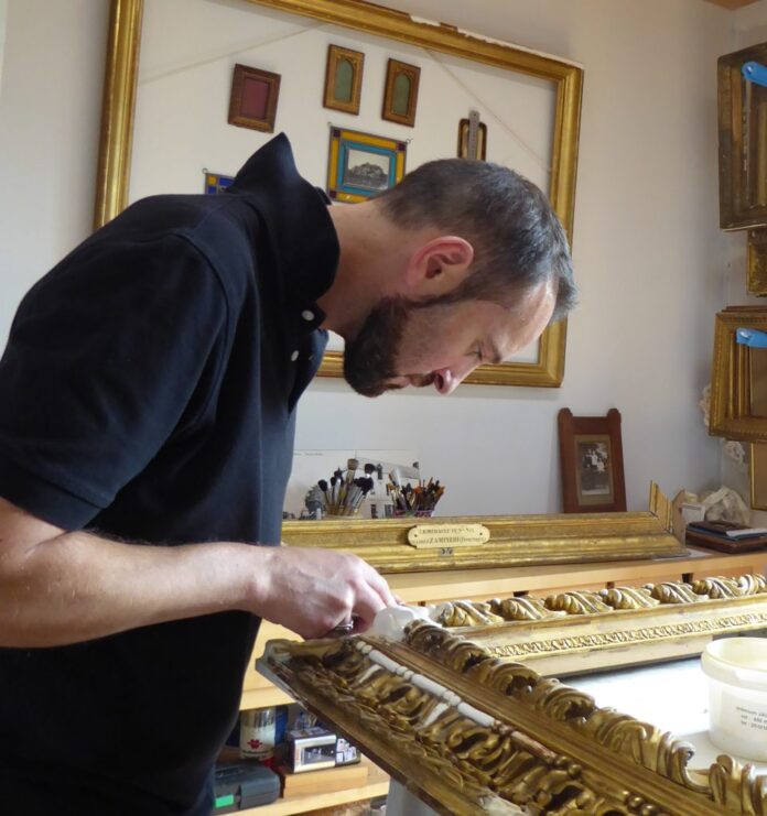 Damien Lepage fait partie des 200 artisans français qui, avec délicatesse et savoir-faire, redonnent vie aux objets du passé. Originaire d’Ille-et-Vilaine, il a quitté les musées parisiens pour revenir en Bretagne et créer OR Fecit, son atelier de conservation-restauration d’œuvres en bois doré