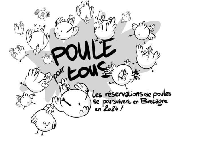 Né en 2017, Poule Pour Tous offre la possibilité d’adopter à petits prix des poules pondeuses issues d’élevages professionnels bio et/ou de plein air qui étaient destinées à l’abattage. Dispositif mené dans toute la France, Poule pour tous est donc présent en Bretagne et offre déjà des possibilités de réservation dans toute la région pour l’année 2024.