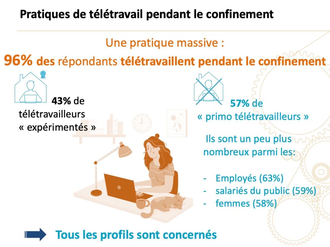 Intéressant à souligner : la plus grande diversité des profils des télétravailleurs pendant le confinement, apportée principalement par ces » primo-télétravailleurs « :