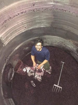 Edouard Cazals dans une cuve chez Hunter’s Wine en Nouvelle Zélande en 2016