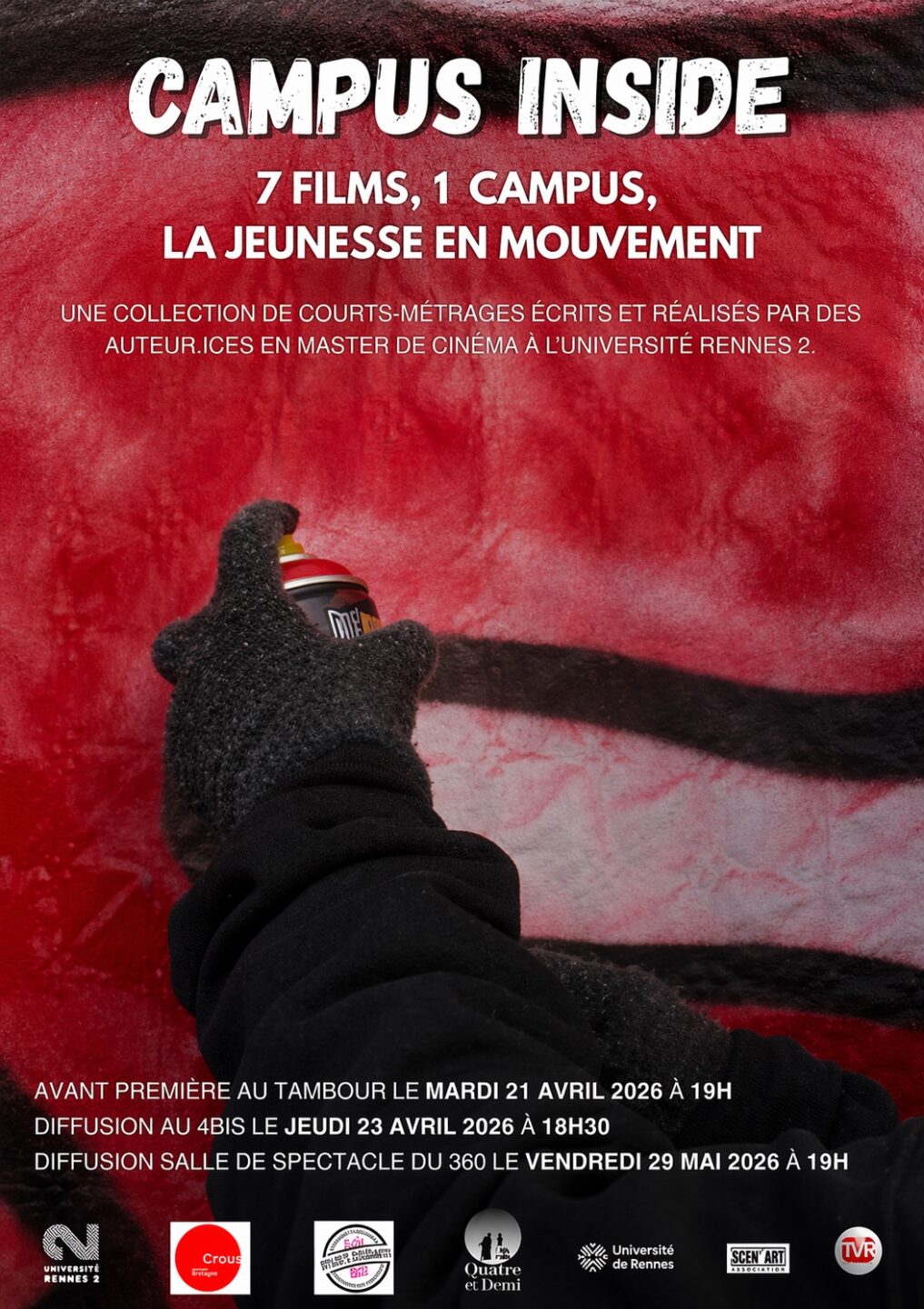 À Rennes, les campus ne sont pas seulement des lieux d’étude, de passage ou de diplomation. Ils sont aussi des mondes à part entière, traversés par les solitudes, les gestes quotidiens, les tensions administratives, les élans artistiques, les corps fatigués, les amitiés, les décrochages et les formes discrètes de solidarité. C’est cette matière vive que vient capter Campus Inside : La jeunesse en mouvement, une collection de sept courts-métrages documentaires projetée en avant-première mardi 21 avril 2026 à 19 h au Tambour, sur le campus Villejean de l’université Rennes 2.