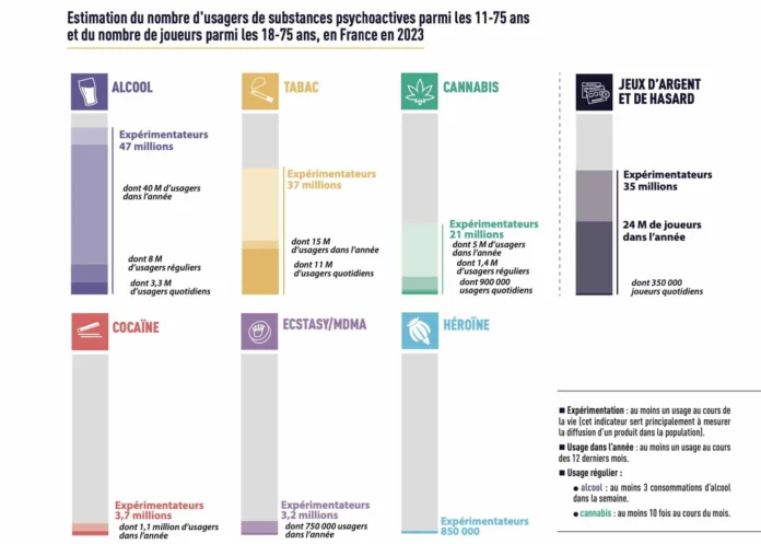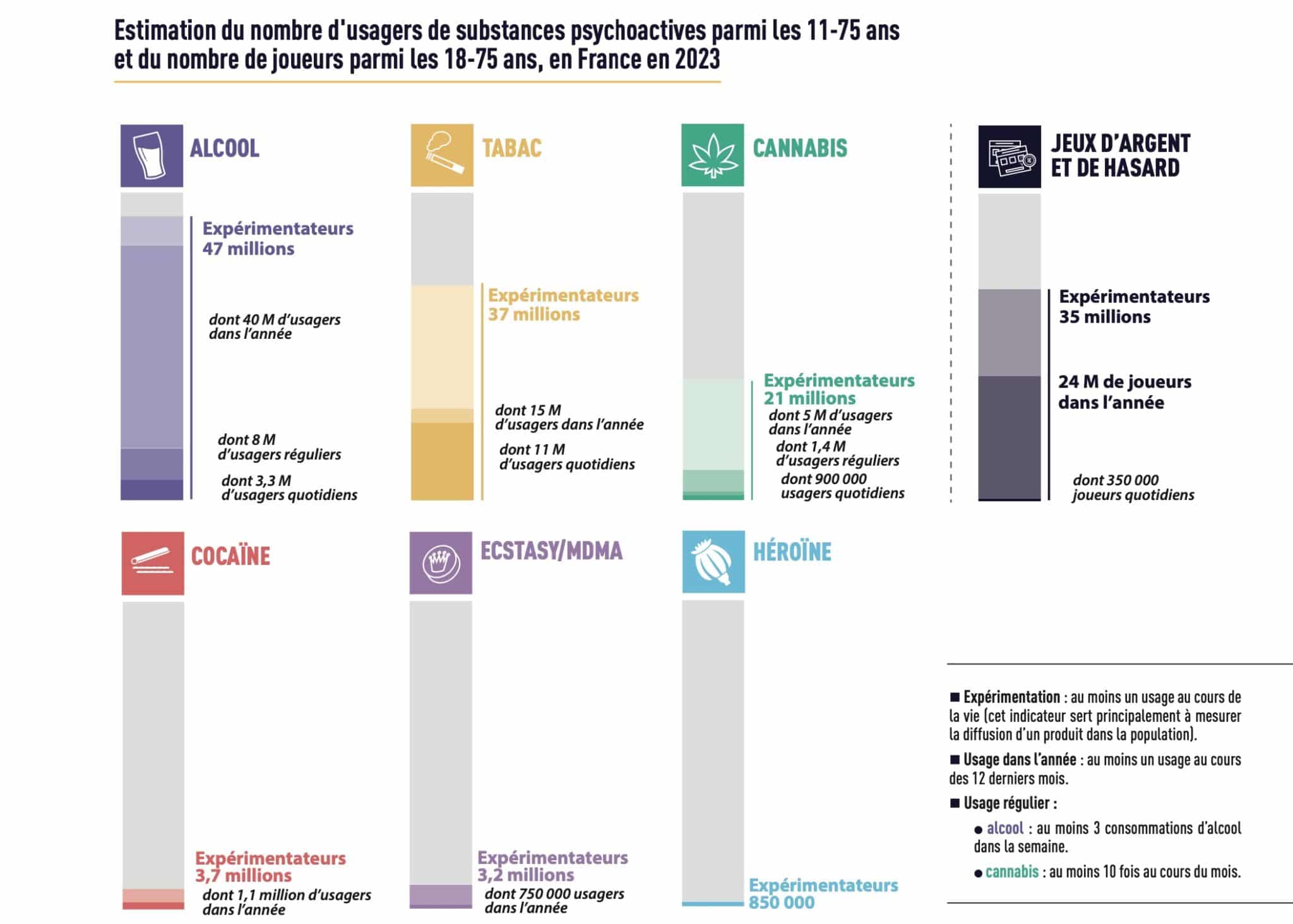 - Cocaïne : l’usage dans l’année concerne désormais plus d’un million de Français (11-75 ans).