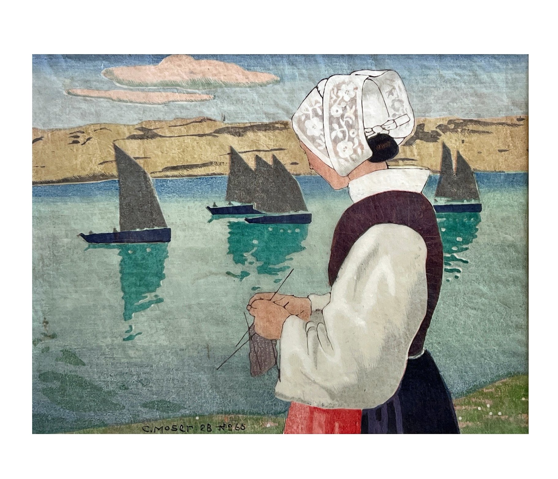 Carl Moser (1873‑1939) aimait la Bretagne, notamment Douarnenez et Concarneau dans le Finistère. Il s’est éteint le 23 juillet 1939 à Bolzano, à l’âge 66 ans, dans l’oubli et la pauvreté. Son œuvre graphique autour de trois thèmes principaux – la Bretagne, le Tyrol du Sud et les oiseaux – fut redécouverte dans les années 1970.