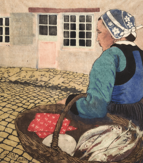 À partir de l’été 1902, il passe tous ses étés en Bretagne, notamment à Douarnenez et Concarneau, où il rencontre de nombreux artistes. C’est d’ailleurs la-bas qu’il rencontre le peintre viennois Max Kurzweil (1867‑1916). Ce dernier l’encourage à explorer la gravure sur bois en couleur et lui transmet les techniques japonaises de gravure et d’impression. Il créera par la suite des gravures sur bois polychromes qui mêlent esthétiques orientales et occidentales, et vie quotidienne bretonne. Il se lie également d’amitié avec le graveur français Henri Rivière (1864‑1951). À l’image de Rivière, Moser adapte le japonisme aux paysages et personnages bretons. Ses figures, souvent représentées de dos, vivent dans une atmosphère douce, portée par le trait, les teintes et les compositions.