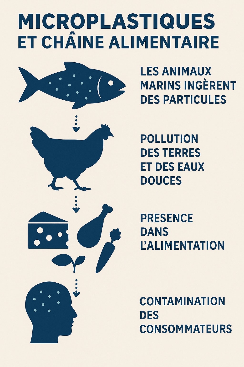 Les microplastiques ne sont pas de simples polluants inertes. Ils sont des vecteurs chimiques redoutables. En adsorbant les polluants organiques persistants, ils deviennent des « bombes toxiques » ingérées par le zooplancton, les crustacés, les poissons… et donc, par extension, par nous. Des chercheurs ont retrouvé des fibres plastiques dans les tissus cérébraux de poissons abyssaux ; d’autres ont mis en évidence la présence de microplastiques dans le lait maternel humain. Chaque bouchée de moules, chaque gorgée d’eau embouteillée, chaque respiration au bord de mer peut désormais contenir son infime dose de plastique.