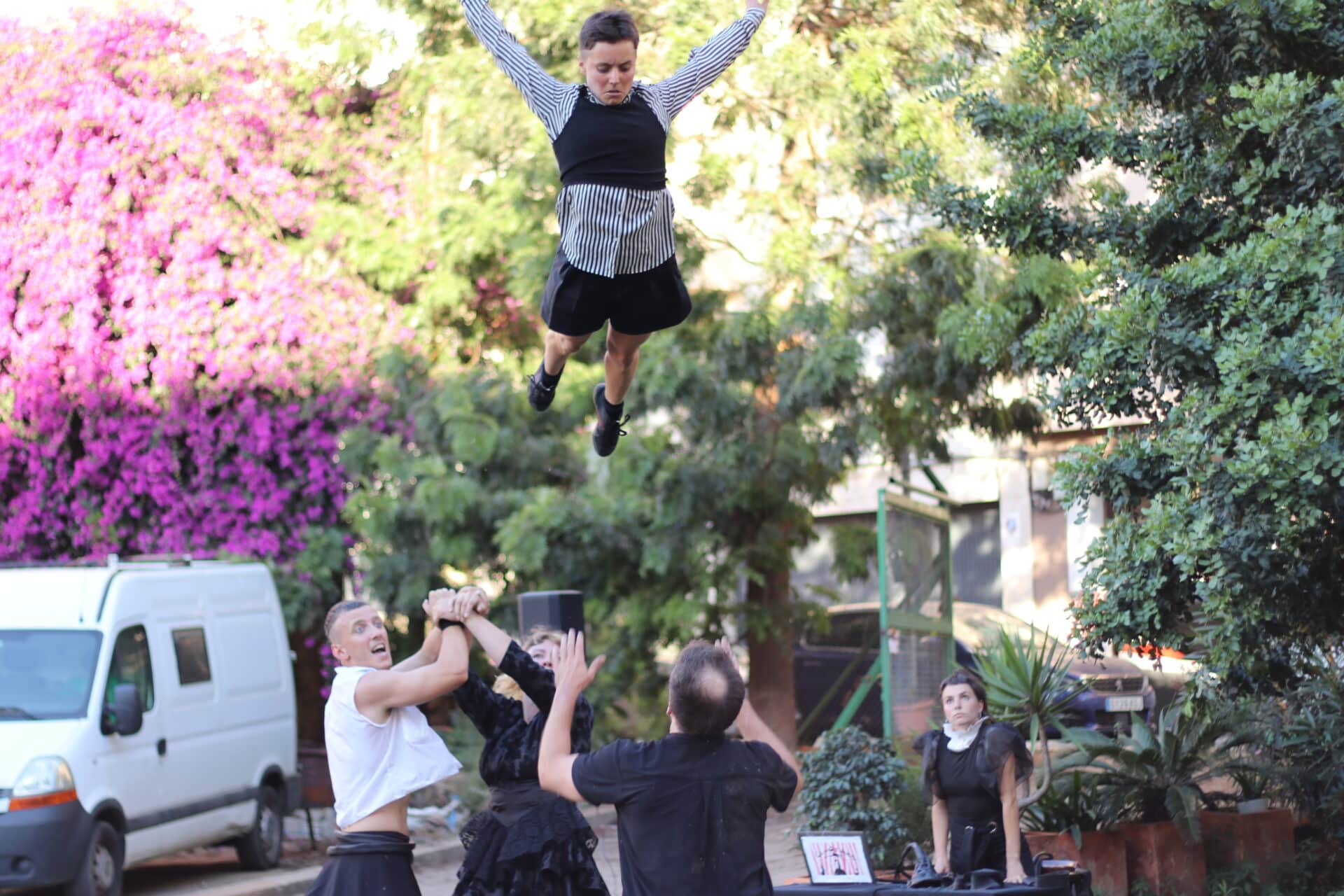 Cette forme courte a été jouée pendant une tournée à vélo en Ardèche avant de poursuivre la création, seulement à cinq cette fois. « Un point fort de notre groupe, qui ne se voit pas forcément dans une création, c’est qu’on a énormément bossé sur l’émotionnel, l’écoute et l’attention entre nous. Travailler tout le temps à plusieurs peut être intense« , confie le circassien. Apolline ajoute : « On a fait en sorte que toutes les prises de décisions soient horizontales pour que cette création soit vraiment construite à cinq. C’est plus longs, mais on en est très contents. » Grâce à une subvention de la Centrale du cirque de Barcelone, la troupe a aussi été accompagnée par la dramaturge Philline Dahlmann pour la phase finale…