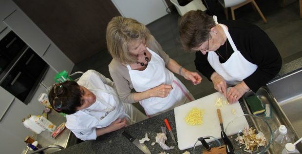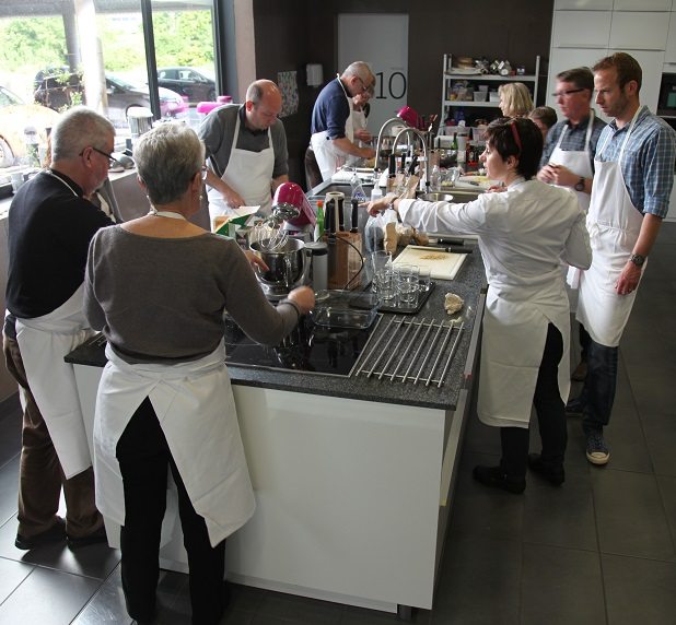 Certains n’hésitent pas à venir cuisiner en famille. C’est le cas de Gwen venu avec Martine, sa maman. Aujourd’hui, ils découvrent ensemble des nouvelles saveurs. «J’ai offert le cours de cuisine La main à la pâte à ma maman qui adore cuisiner ; comme moi aussi nous sommes venus tous les deux. (éclats de rires) » On n’oubliera pas de souligner l’aspect intergénérationnel généré autour de ce moment de partage. Les jeunes et moins jeunes façonnent ensemble des recettes souvent innovantes, avant de passer à table. Découverte, convivialité et plaisir – oui chef !