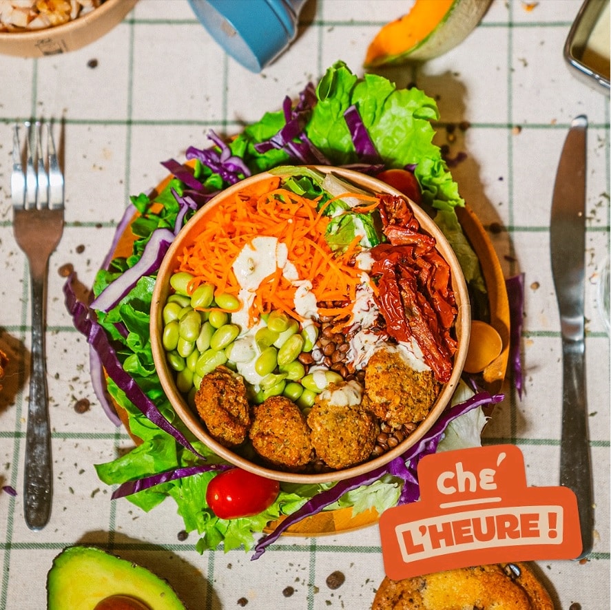 – La gourmande Ch’portive, composée de riz et lentilles et garnie d’avocat, de tomates cerises, de noix pour la touche croquante et une sauce miel moutarde pour la douceur.