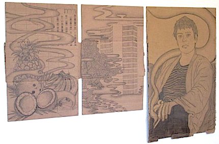 Laurent Petitot, un ancien élève des Beaux-Arts, travaille sur du carton récupéré : ces dessins mêlent peinture taoïste à inspiration occidentale. La dualité des images se retrouve dans une recherche assumée d’orientalisme : originaire de Lorient, ancien comptoir des Indes, le jeune artiste aime à travailler une technique orientale pour représenter une image fantasmée et exotique.