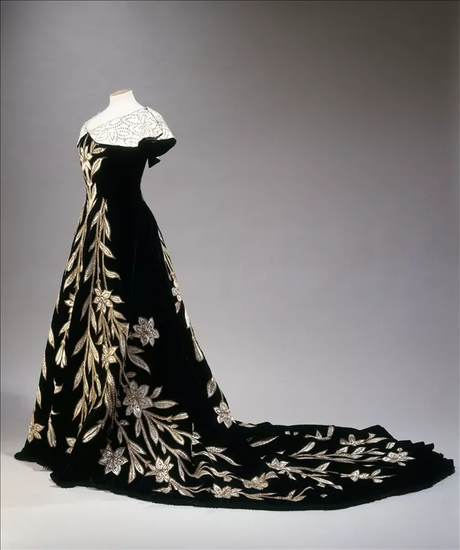 Le parcours imaginé par le Palais Galliera, en collaboration avec le Petit Palais, est une traversée sensorielle et intellectuelle du XIXe siècle flamboyant. Plus de 80 créations somptueusement restaurées sont présentées : robes à tournure, capes brodées, manteaux de cour, pièces de bal. Autant de pièces uniques issues des collections du Palais Galliera, du Musée des Arts Décoratifs, du Victoria & Albert Museum, ou encore de la collection privée de la famille Worth.