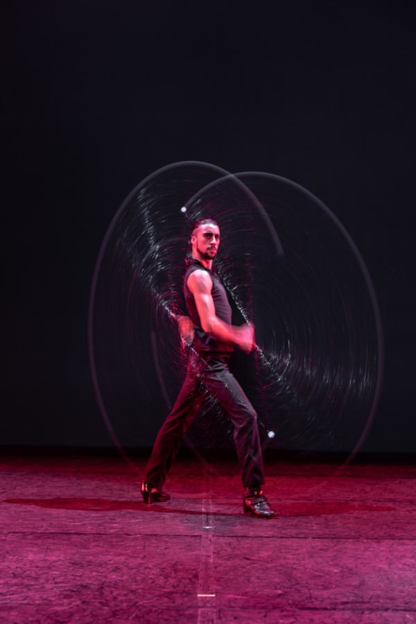 Tous danseurs folkloriques avec une base de danse classique, les artistes se donnent corps et âme dans la chorégraphie et transmettent une énergie à couper le souffle, une expression enthousiaste ne quittant pas leur visage. Du premier au dernier pas de danse, les danseurs se déchaînent et enchaînent les mouvements de pieds dans une chorégraphie qui démontre l’agilité et l’habilité de leurs pieds. Parfois vêtus d’un perfecto en cuir noir et de claquettes, ou d’un poncho traditionnel et pieds nus, les pieds s’agitent, se courbent, les jeux de jambes vigoureux s’enchaînent de manière impressionnante et le sourire demeure. Le niveau de technicité élevé et les compétences requises se confirment au fil de la chorégraphie et ne peut que subjuguer.
