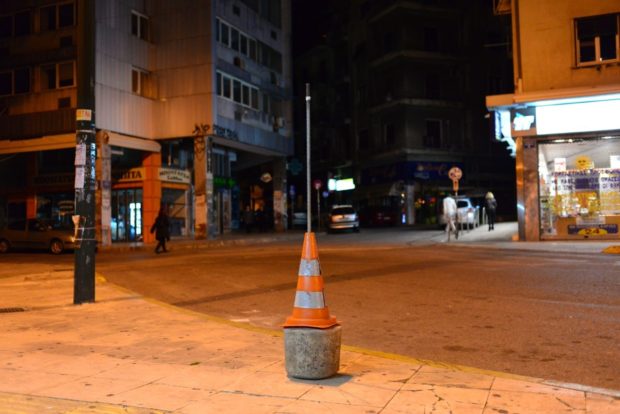 Même si Athènes est une ville sans frontières bien délimitées, tout, ici, suit un ordre strict du point de vue du temps et de l’espace. La vie s’organise selon une dichotomie très précise : ici/là-bas, avant/arrière, gauche/droite, est/ouest, avant/après. La réalité se divise selon des lignes verticales inébranlables. Des lignes de fracture qui coupent la ville comme des lames de couteau. Parfois, c’est un obstacle qui brise la continuité du paysage : ici/là-bas. Parfois, c’est la surprise que crée un changement inattendu : avant/après. À d’autres moments, c’est la brutalité insupportable d’un événement : avant/après. Et ainsi, chaque fois que les Athéniens sont amenés à choisir leur camp, la situation est fausse, à double titre. D’un côté, la géographie semble défier toutes les règles. Ni un côté ni l’autre ne sont préférables : les trottoirs sont partagés en deux, les places vides sont délimitées par le vide de l’espace, les rues changent de nom en permanence… Les autoroutes qui surgissent du sol, les immeubles dont l’usage n’est jamais le même et d’autres dont on se demande bien quelle trouble fonction ils remplissent… Aucun choix ici n’est aisé à faire. Ensuite, un second doute saisit ceux qui arpentent les rues d’Athènes. Tout est passé, et en même temps tout est présent. L’histoire prend la forme d’une triple détermination. Tel un mantra que la ville elle-même répète à l’infini : Je ne me souviens pas – Cela ne me concerne pas – Je ne sais pas. Tout est passé, et en même temps tout est présent. Alors les Athéniens comptent sur les limites qu’ils tracent eux-mêmes. Ils affichent des marques de propriété. Ils postent des cônes de signalisation. Un bloc de ciment qui détermine un passage. C’est ainsi que l’espace public à Athènes est en permanence remis en question. Ce qui est public devient personnel – non pas privé – il n’y a rien de privé dans nos vies ici. Rien de discret. La propriété fait l’objet d’une lutte permanente. Comme si notre existence dans cette ville n’avait pas de place légitime.