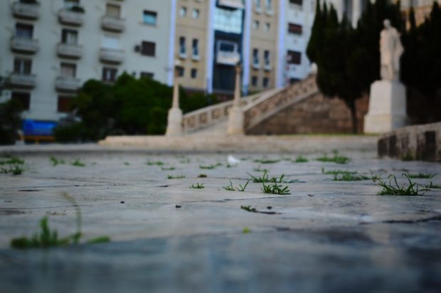 La nature trouve son chemin à travers toute chose. Même dans les fissures d’une crevasse desséchée, la nature trouvera un espace disponible à fleurir. Sauf si vous déracinez l’herbe définitivement. À Athènes, rien de tel ne se produit jamais. Personne ne se soucie de supprimer arbitrairement tout ce qui apparaît dans l’espace public, de façon inattendue, avec audace. Tout reste en place, en décomposition dans le néant. Mais rarement quelque chose meurt dans le néant. Il y aura toujours une trace laissée derrière. Et donc, cette ville vit dans une frénésie constante. Oh, sans oublier bien sûr, que pour la même raison – si rien n’est jamais retiré intentionnellement – tout peut être coupé violemment et sans remords. Athènes ne se soucie pas de son historicité. Il est juste que les mauvaises herbes continuent de germer entre les mailles du filet.