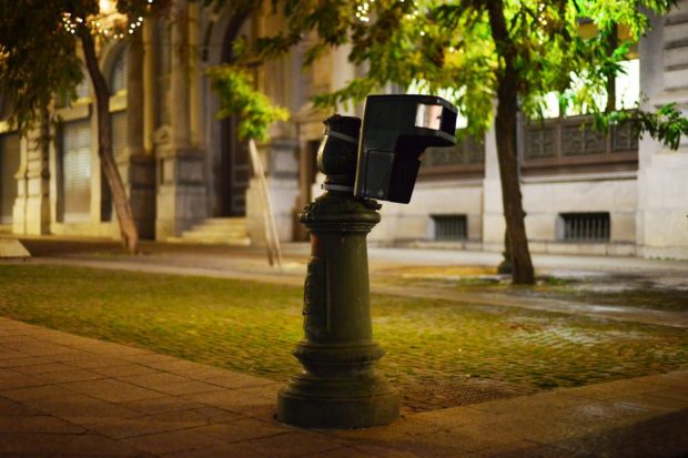 Ce lampadaire sur la place faiblement éclairée en face de l’Hôtel de Ville a quelque chose de secrètement attrayant. Le poste est cassé. La lampe manque. Et quelqu’un (probablement un travailleur de la ville) a dû penser qu’ajouter la fixation d’une poubelle en plastique sur le métal amputé de la base, au moyen de deux anneaux en aluminium, pourrait le maintenir en place. Tout cela s’est passé dans le passé, parce que maintenant, le bac lui-même est absent. Seul le haut reste. Le seau qui devrait être fixé dessous a été volé. Cette métaphore de la vie athénienne ! Donner une nouvelle fin à un lampadaire cassé en le transformant en un récipient de débris, tout ça pour découvrir que les déchets seront encore là sur le trottoir sombre, et ce, jusqu’à la fin. D’une certaine manière, j’aime l’étreinte subtile de ces deux objets démembrés. Cela me rappelle que la vie vainc souvent nos moyens prescrits. La réalité est un système impitoyable et incontrôlable. Certaines choses semblent se produire spontanément, comme l’acquisition d’une vie propre.