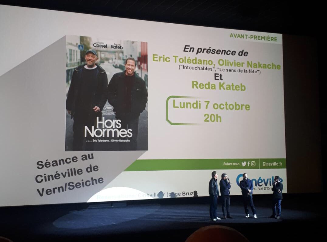 Réalisé par le duo choc du box-office, Éric Toledano et Olivier Nakache, Hors normes a la recette d’un film qui marche. À l’écran Vincent Cassel et Reda Kateb encadrent des jeunes autistes. Les réalisateurs et Reda Kateb étaient présent lors de l’avant première du film au Cinéville de Vern-sur-Seiche, près de Rennes le 7 octobre. Hors normes sort le 23 octobre.