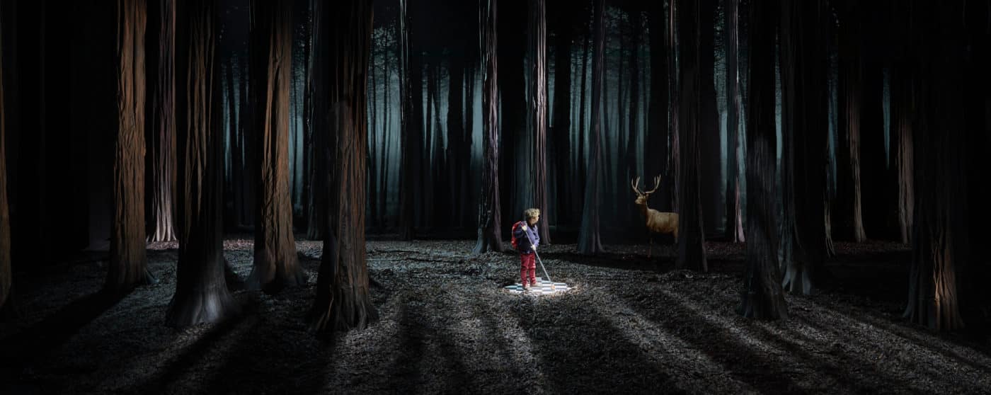 LE BRUIT DES LOUPS – Promenons-nous dans les bois. Étienne Saglio nous plonge au coeur de la forêt, dans l’univers d’un conte. Dans ce monde fantastique où la réalité devient fiction et la fiction, réalité, la nature s’impose et reprend ses droits. Cette immersion dans l’univers de Grimm ou de Max et les maximonstres est une ode à nos forêts intérieures, la volonté de réveiller la nature de nos imaginaires pour qu’elle redevienne réelle dans nos vies.