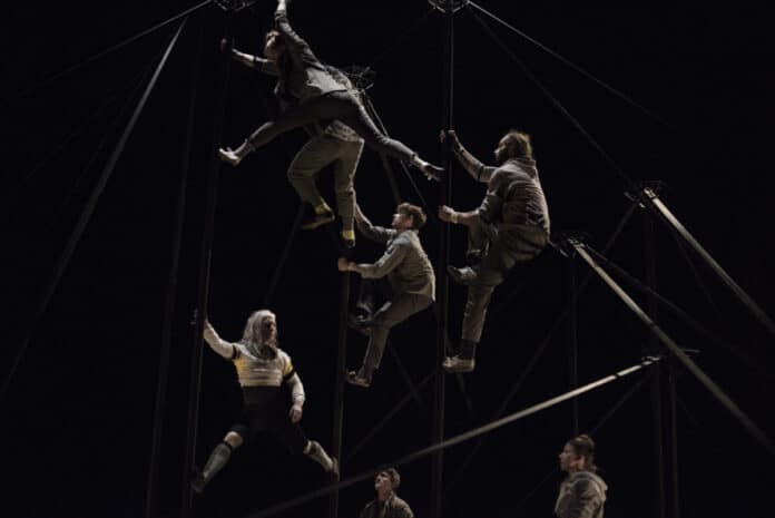 Le collectif Sous le manteau révèle sa première création Monstro dans le cadre du festival TNB du jeudi 7 novembre au samedi 9 novembre 2019, au Triangle – Cité de la danse. Sept acrobates, six nationalités et 32 dates au compteur depuis janvier 2019. Pour la première fois à Rennes, le collectif Sous le manteau propose un véritable manifeste artistique autour de la discipline du mât chinois. Rencontre avec les acrobates Valia Beauvieux et Anatole Couety.