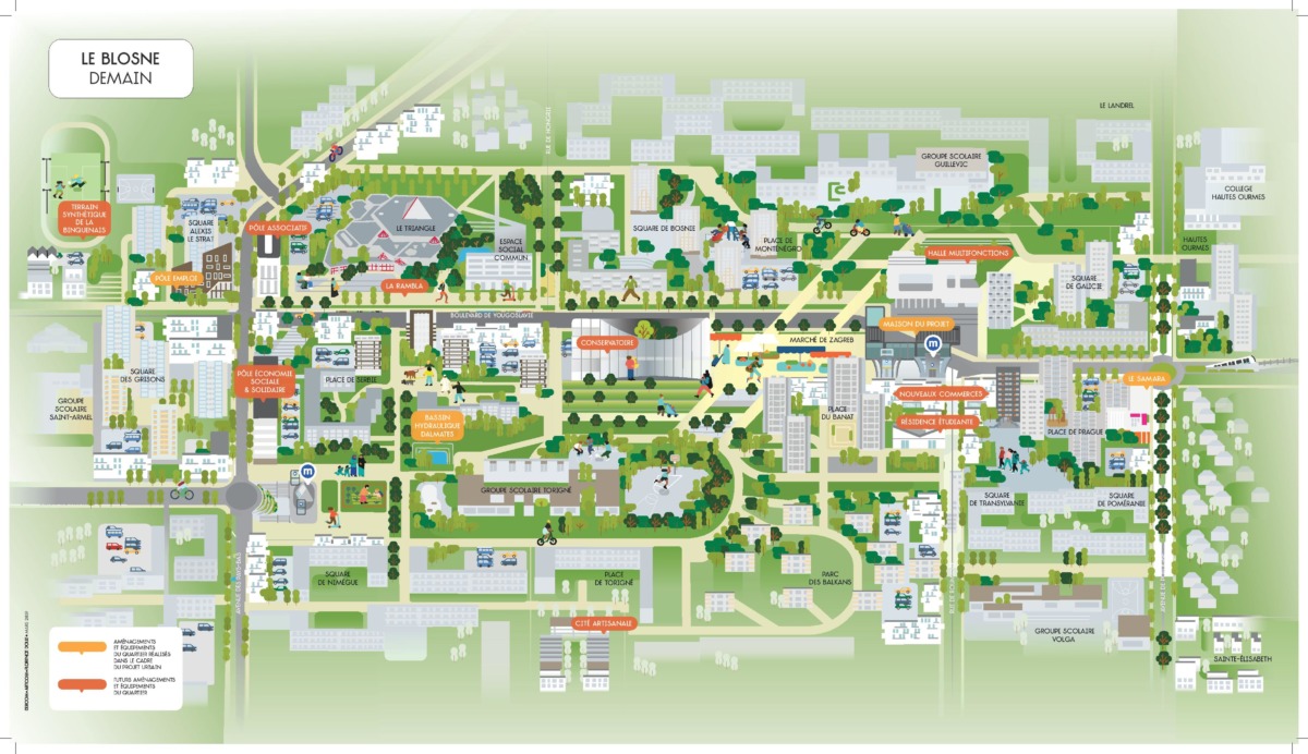 Situé à proximité immédiate de la station de métro Le Blosne, le bâtiment a été conçu par l’agence Tetrarc architecture. Tout en courbes et transparence, l’édifice sera ouvert sur le quartier, tout en constituant un repère phare de la place, qui sera intégralement réaménagée. Ce nouvel équipement s’inscrit dans l’opération de rénovation urbaine du quartier et dans la transformation de la place de Zagreb. Après une période de concertation, le quartier est en pleine mutation, avec de nombreux projets d’équipements et d’aménagement d’espaces publics.