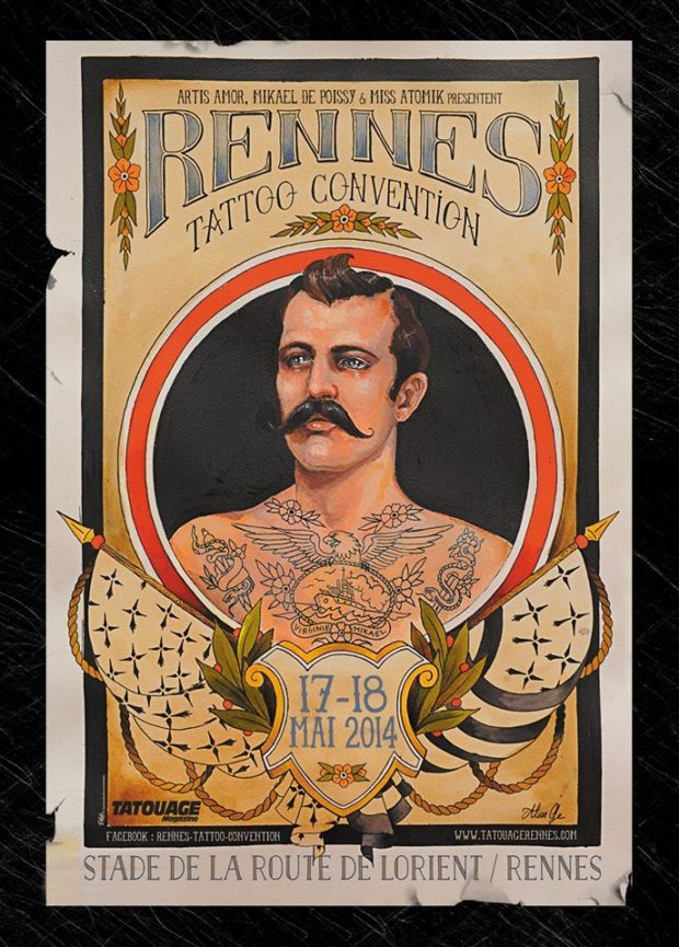 À l’initiative d’Artis Amor, Miss Atomik et Mikael de Poissy, la première convention de tatouage (ou tatoo) aura lieu à Rennes les 17 et 18 mai 2014 dans les salles de réception du Stade de football de la route de Lorient. Un lieu prestigieux (« on ne pouvait rêver mieux », apprécient les organisateurs) pour une pratique de plus en plus répandue et de mieux en mieux assumée. Et, de fait, Miss Atomik, tatoueuse rennaise de talent, a su séduire par son art et son style de nombreux footballeurs rennais.