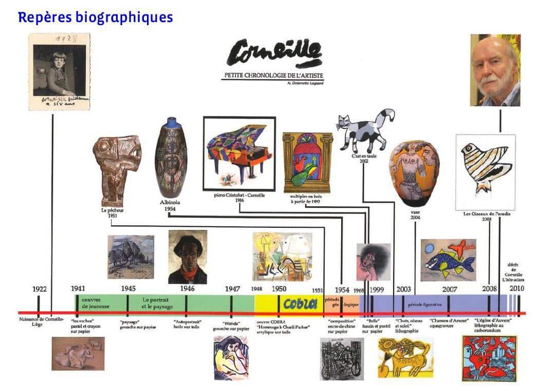 Corneille et Karel Appel voyagent ensemble en Belgique (1946) et découvrent les formes cubistes et collages de Pablo Picasso, un véritable choc pour l’artiste néerlandais. Au même moment, l’art africain entre dans sa vie par l’intermédiaire du professeur Amaat Burssens à Gand. Débute alors une grand histoire d’amour nourrie de voyages et de peinture. Dans la simplicité des formes, Corneille trouve un chemin artistique qui l’habitera toute sa vie. « Il peint le vol des oiseaux à travers ses flux de couleurs et de lumières qui traversent la toile comme l’oiseau traverse le ciel », déclare Victor Vanoosten.
