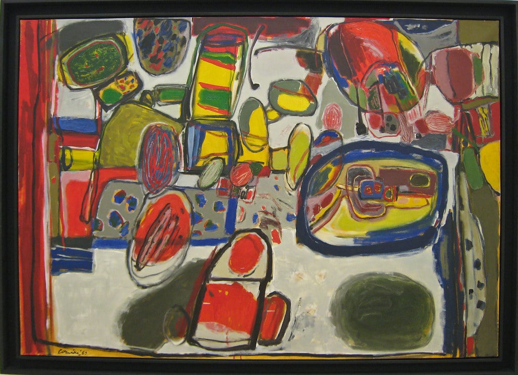 Alors que CoBra émet un cri de liberté et de couleurs, une douceur se dégage du travail de Corneille. « Il va trouver des réponses à ses propres recherches artistiques. Après le scandale de l’exposition CoBra et son accrochage anti-conventionnel à Amsterdam, les membres se sont installés à Paris (1950) ».