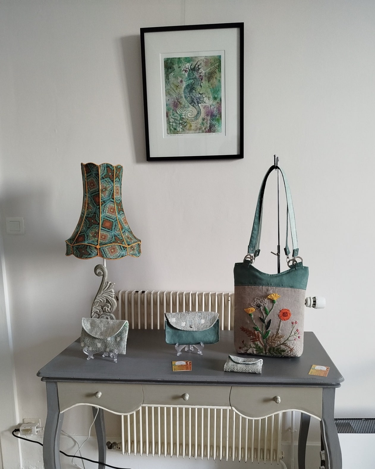 C’est dans l’un de ces deux espaces que s’est installée Véronique Martin, artisane d’accessoires de mode et abatjouriste, créatrice de la marque Iris et Hortense. Elle y expose ses propres pièces mais se charge également d’accueillir, tout au long de l’année, les créations d’autres artisans d’art bretons. L’objectif est clair : offrir au centre Bretagne un lieu de visibilité pérenne pour les métiers d’art, dans un cadre patrimonial qui valorise naturellement les objets présentés. La boutique de créateurs installée dans ses murs attire, intrigue, et séduit par sa simplicité soignée. Ici, pas de luxe tapageur, mais une attention portée au geste, à la matière, à l’histoire des objets.