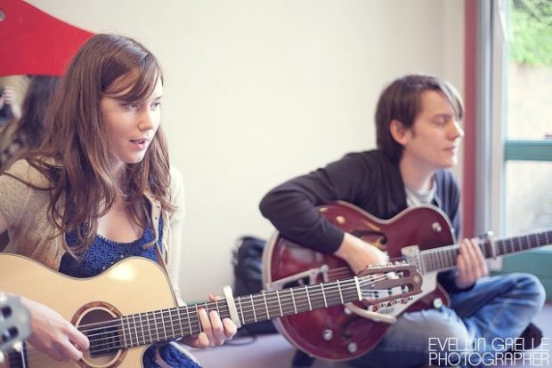 Les arrangements de l’album sont réadaptés avec une belle finesse et une intelligente subtilité, aux configurations très particulières de l’événement. Les claviers-jouets, le métallophone égrènent leurs notes singulières et encadrent la voix de la rousse Orianne. Loig et Yoann partagent avec talent et discrétion le plaisir de jouer, de partager les histoires qui ondulent et chatoient au-dessus du gazon comme une rosée mélodique. À chaque représentation, à aucun moment, ils ne laissent transparaître une once de lassitude alors qu’ils en enchaînent trois par jour.