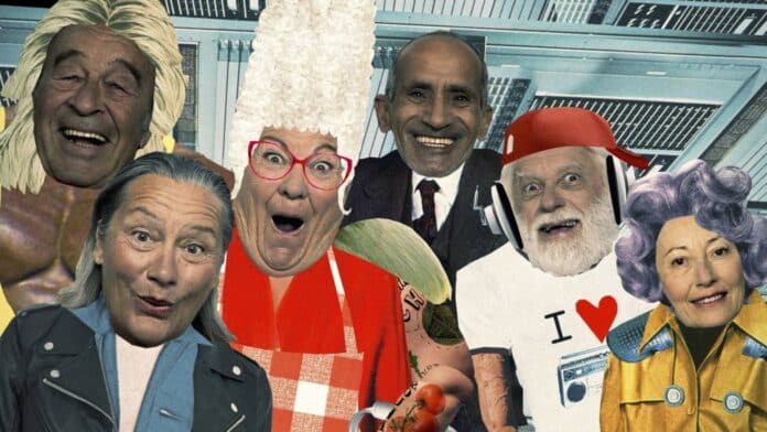 Que dire, si ce n’est que le résultat est bluffant, délicieux même. Les personnages, vieux rétro futuristes sortis du 20e siècle, enchaînent les punch lines pour une série WTF qui nous ressemble : le contrôle fiscal, mamie sur Meetic du futur, les médecins ayant recours à la cybernétique pour soigner le mal de dos, etc. L’équipe du scénario a pris les problèmes des seniors et les a transposés dans un futur plus ou moins proche. Les vieux parlent toujours de la météo ? Grand bien leur fasse, ils parleront alors d’une pluie de météorites ! « On s’est parfois inspirés de films alambiqués, comme Universal Soldier avec Jean-Claude Van Damme et Dolph Lundgren », confesse Jean-François. « Mais l’homme augmenté est une réalité. La série se situe dans une culture qui ressemble beaucoup à ce que l’on vit aujourd’hui. Nos vieux ont vécu avec ces thèmes et quand ils sont dans l’espace, ils bricolent avec. » Chaque épisode est un condensé de gags, trois minutes bourrées à bloc, mais dont chaque intervention sert à l’histoire. « Cette exubérance au niveau du scénario est venue naturellement et ce dynamisme vient contrebalancer le côté pantouflard », déclare Grégoire. « On tourne toujours autour de cette notion de collages, autant visuels que dans les traits de caractère des personnages. C’est de l’assemblage de morceaux – du vieux et du récent – qui ne semblent pas compatibles, mais qui pourtant créent quelque chose de cohérent », conclut Grégoire.
