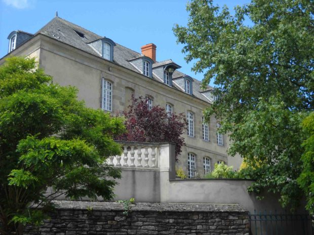 Le passage dans les jardins laisse penser à une frise chronologique, où défilent les époques. En contrebas, l’hôtel de Courcy construit en 1830 par Louis Richelot, alors architecte de la ville de Rennes, nous ramène au XIXe siècle. Cet hôtel aura vu passer quelques prestigieuses figures rennaises, comme Jobbé-Duval ou Odorico, qui ont œuvré lors des transformations faites par la famille de La Goublaye de Nantois en 1885. Restauré après son acquisition par le Conseil Régional en 1983, il accueille aujourd’hui ses séances plénières.