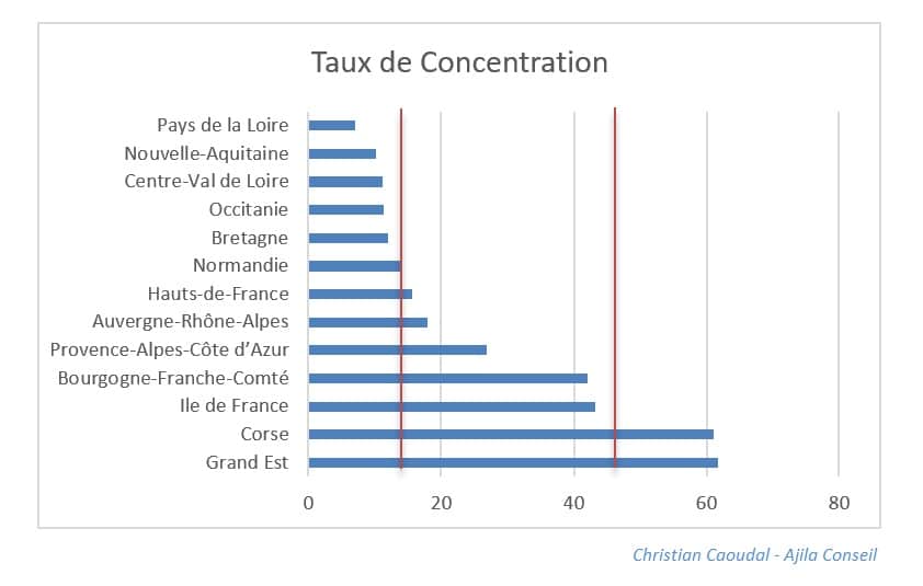 – un troisième entre ces deux ensembles : les autres régions, proches en chiffres du premier groupe ou au contraire du second.